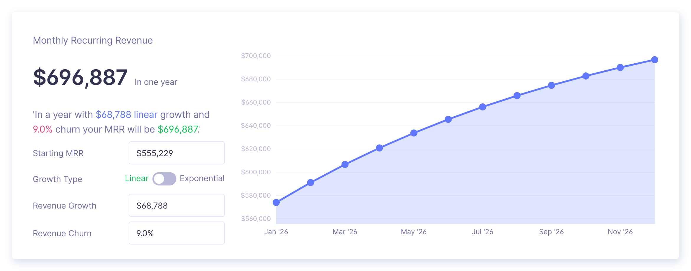 As with MRR, most businesses don't experience exponential growth. But you can see what it would look like with this toggle.