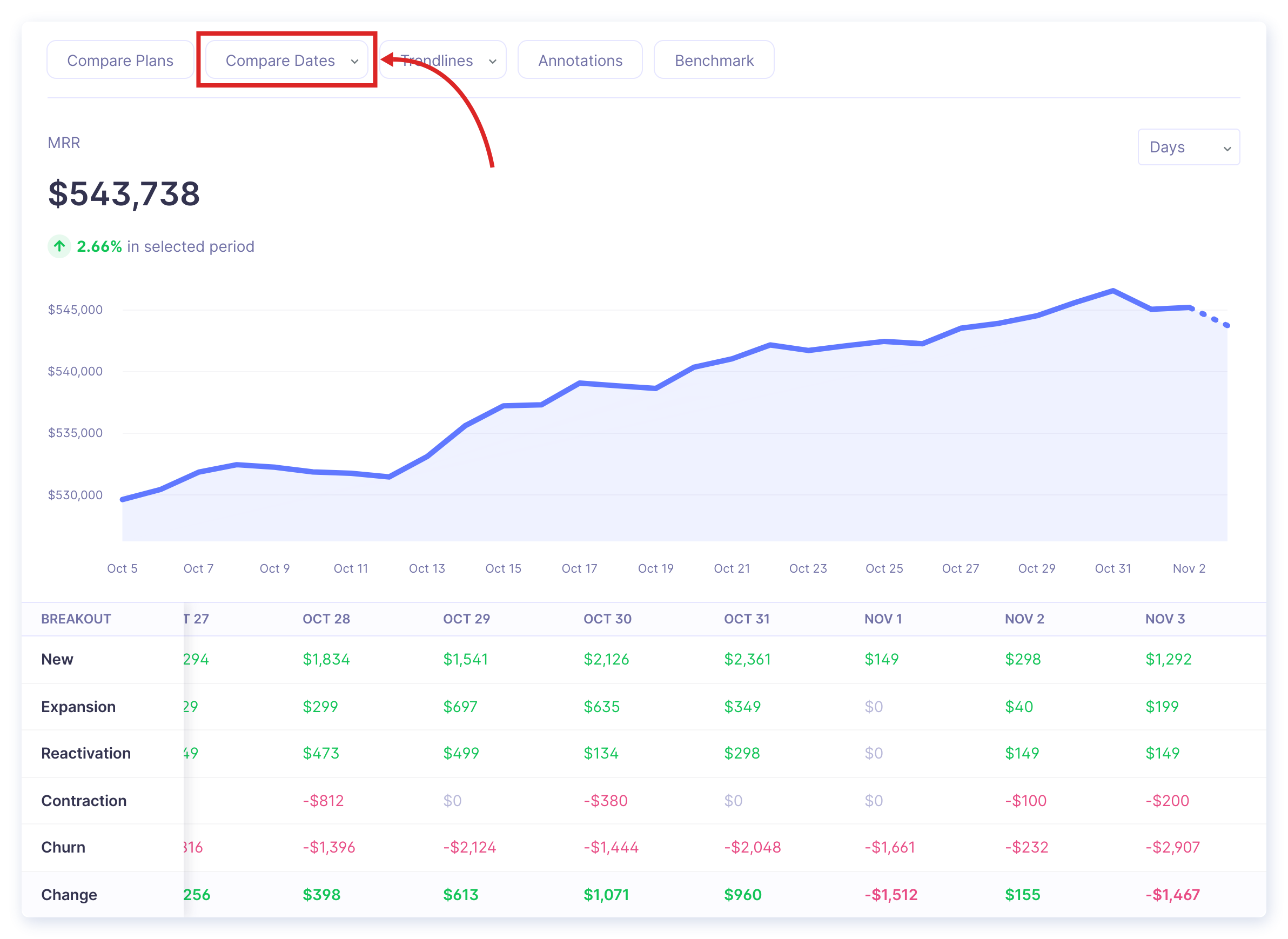 1. Click on Compare Dates in the toolbar.